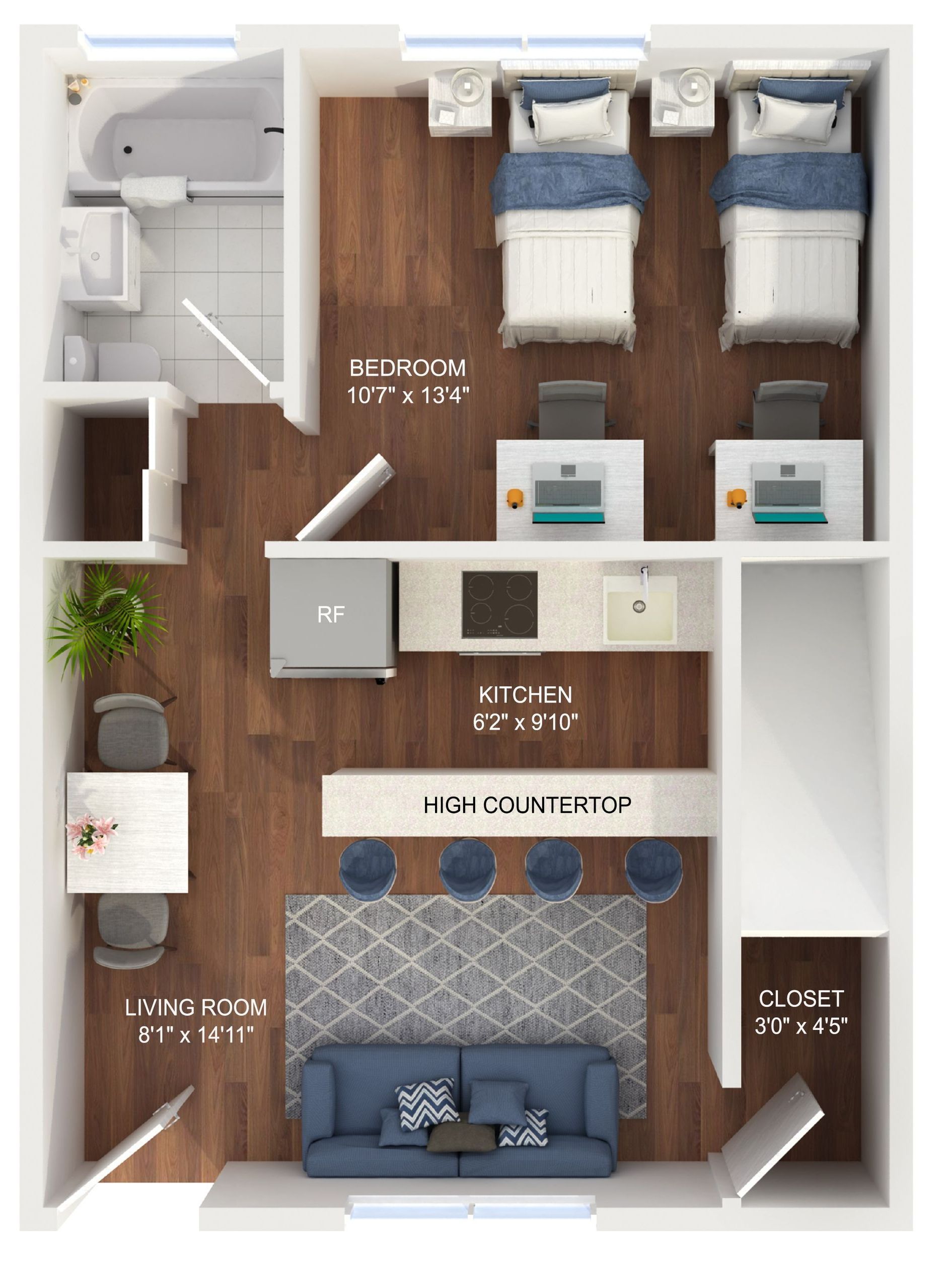 Trojan Place on Shrine has one-bedroom apartments on Shrine Place in the DPS & FRYFT Zone. We are located on one of the most popular streets at USC for off-campus housing. We are a couple of blocks from the University, USC Village, restaurants, grocery stores, and the rest of Los Angeles.